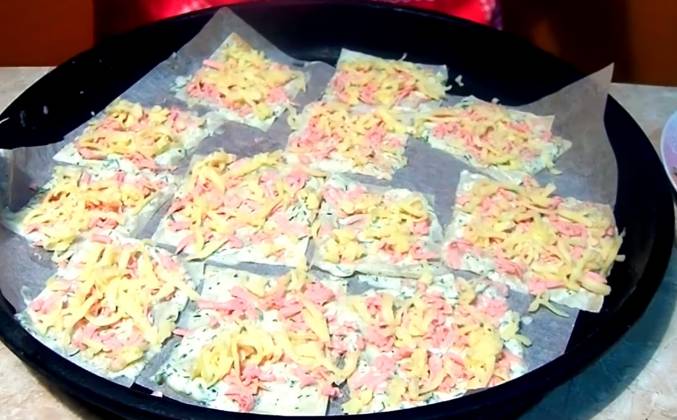 Как приготовить Чипсы из лаваша в духовке с сыром и колбасой рецепт пошагово