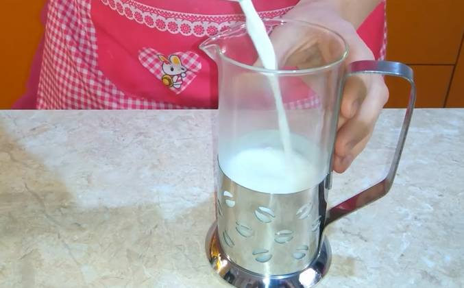 Кофе латте в домашних условиях по рецепту Ольги Лунгу, со взбитым молоком в френч прессе.