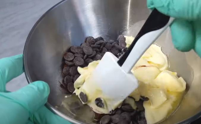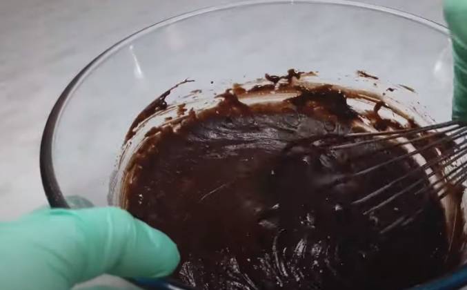2. Снимаем шоколадную массу с бани и дадим немного остыть. А пока в отдельную ёмкость отправляем яйца и слегка их размешаем, до объединения белка и желтка. Теперь к яйцам добавляем сахар, ванильный сахар, щедрую щепотку соли и тщательно всё перемешиваем венчиком. Добавляем подостывшую шоколадно-масляную массу и снова перемешиваем. Теперь в эту массу через сито добавляем муку и какао-порошок, просеиваем, разминая все слежавшиеся комочки, которые обычно есть в какао, и замешиваем гладкое однородное тесто. По желанию можно добавить любые добавки. Переливаем полученную массу в форму для выпечки, распределяем по всей поверхности, хорошо разравниваем и сразу же отправляем в разогретую до 175-180 градусов Цельсия духовку, режим верх-низ, без конвекции.
