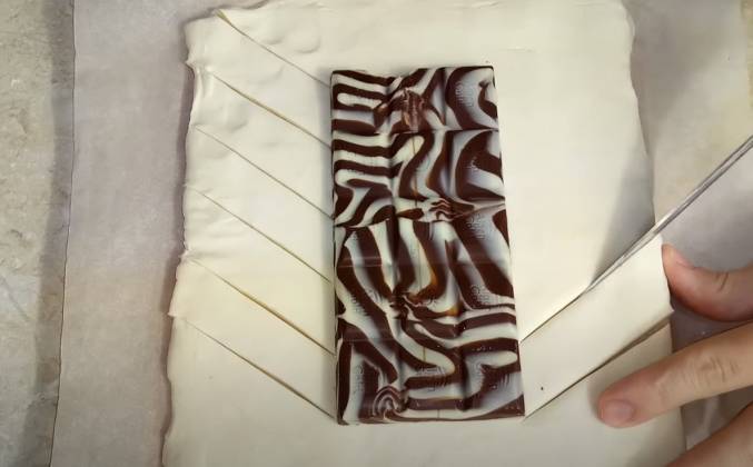 Шоколад в слоеном тесте по рецепту Ольги Лунгу, это самый простой и быстрый десерт к чаю. Нам понадобится пол килограмма слоёного теста, лучше брать листами.