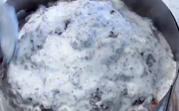 3. Для крема взбить несколько минут все ингредиенты. Если сметана не густая, то крем будет жидковат, это не страшно, в холодильнике он стабилизируется, но при сборке в этом случае лучше использовать кольцо. После часа в холодильнике его можно будет с торта снять. Для глазури смешиваем все ингредиенты, греем на среднем огне, помешивая, до получения красивой глянцевой шоколадной текучей массы.