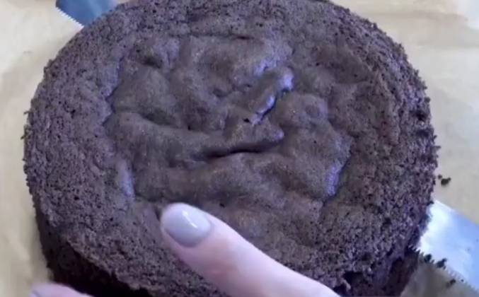 4. Нижний корж смазываем кремом, затем кусочки бисквита макаем в крем и складываем горочкой на торт, прослаивая вишней (без сока, только ягоды) и орехами (немного оставить для украшения). Можно торт полить сразу глазурью, можно сначала убрать на час в холодильник, уже потом полить, после снятия кольца, если его использовали. При комнатной температуре за час с ней ничего не произойдёт.Видео рецепт ютуб ниже 👇