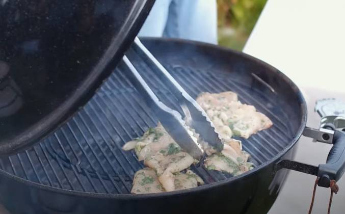 3. Всё что нам нужно сейчас сделать - это переложить их в зону прямого жара. Готовятся кальмары, ну, молниеносно, моментально, буквально 2-3 минуты суммарно, поэтому не отходите от гриля. Ароматы Азии... Отлично. Можно даже крышку не закрывать, настолько быстро всё происходит. Видите, кальмары у нас стали матового цвета, они даже разваливаются уже, точно пора перворачивать. О, посмотрите вот на эту корочку, это явный признак того, что всё идёт по плану. Готовим ещё, примерно, секунд 40 и снимаем их. Сил нет, кальмары готовы, единственное, что я хочу сейчас сделать - это отрезать дольку лимона. Конечно буду использовать их в подачу.