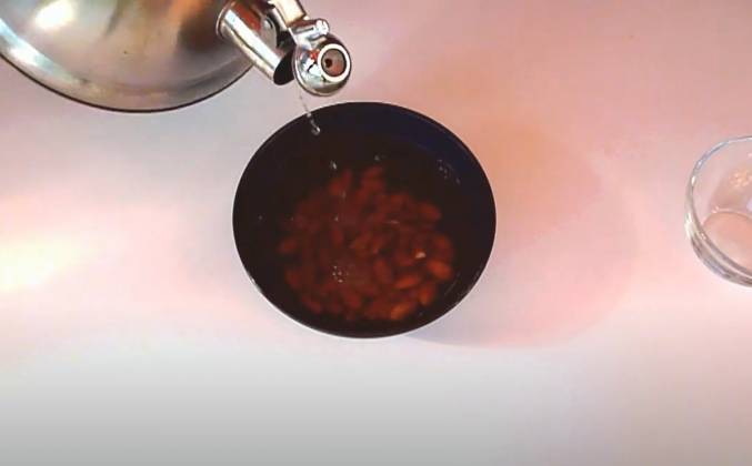 2. Затем слить воду. Кожура очень легко отделяется при надавливании на орех двумя пальцами. Затем необходимо высушить орех до исходного состояния разложив на расстоянии друг от друга.