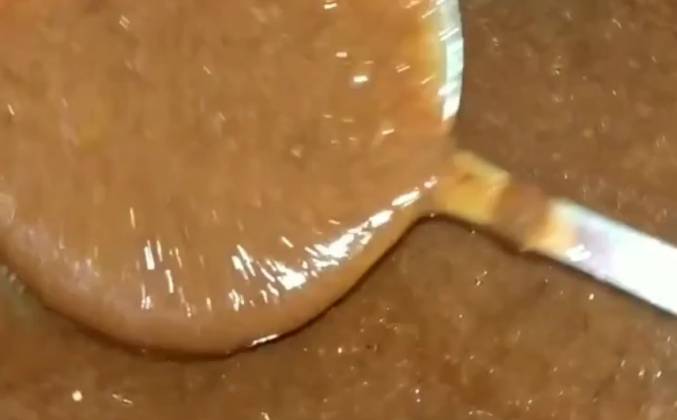 2. Я варила час и потом вжикнула всё блендером. Пробуем и добавляем по вкусу сахар. Немного охлаждаем и выкладываем будущую пастилу из слив ровным тонким слоем (5-8 мм) на противень или в форму для запекания, застеленную бумагой для выпечки.