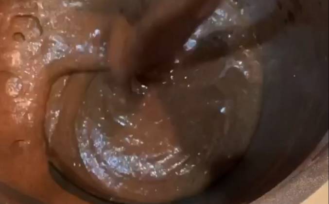 2. Ввести оставшиеся сухие ингредиенты, все аккуратно перемешать! Взять несколько ложек бисквита и добавить к растительному маслу, вымешать и отправить обратно в дежу! Духовку разогреть до 170 градусов! Противень застелить пергаментом и вылить на него тесто, ровно распределив по всей поверхности!