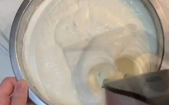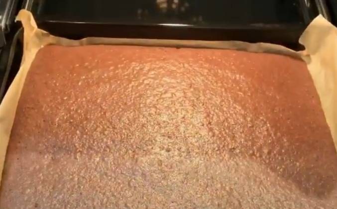 3. Поставить выпекаться 18-20 минут! Ориентируйтесь на сухую шпажку! Приготовим крем! Все ингредиенты должны быть комнатной температуры. Масло взбить с сахаром, добавить сметану! Все взбить до растворения сахара! Отложите 3 ст.л. крема (для выравнивания) и уберите в холодильник! Бисквит достать и дать остыть на решетке!