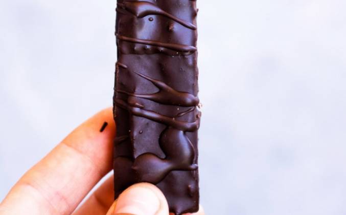 5. Тем временем, приготовим шоколадную глазурь. Самый простой путь — это купить веганский шоколад 🍫 и растопить его с кокосовым маслом. Или же растворить какао (50 гр.) в растопленном кокосовом масле (100 гр.), но имейте ввиду, что в этом случае глазурь получается очень жидкой и батончики придется покрывать глазурью несколько раз. Для меня этот способ оказался не самым удобным, поэтому я купила шоколад и растопила с кокосовым маслом.