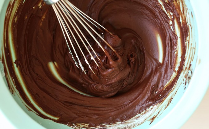 3. Поднимите пергаментную бумагу, чтобы достать брауни с тарелки, и слегка сожмите руками, чтобы создать меньший квадрат - это сделает торт немного толще и плотнее. Верните обратно в блюдо и поместите в морозильник или холодильник для охлаждения на 10-15 минут, а затем нарежьте на 12 квадратов (если добавляете ганаш, нарежьте потом!).
