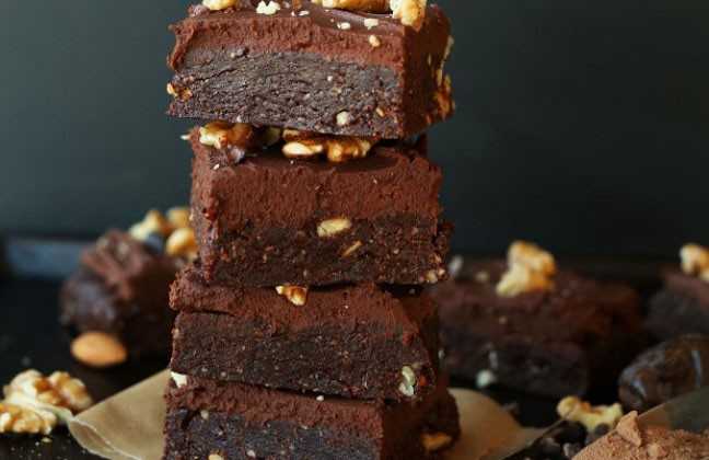 Простые веганские брауни без выпечки с грецкими орехами и перьями какао! Шоколадный ганаш из кокосового масла не является обязательным к приготовлению, но рекомендуется для придания ему бледного, декадентского послевкусия. Здоровый веганский, безглютеновый десерт!