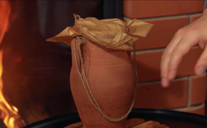 3. А поближе поставят кувшины те, кто торопится, совсем за копейки. Мы сегодня собираемся снимать 2 сюжета наших передач. Вот этот кувшин простоит напротив камина до вечера, и посмотрите, какая еда в нем получится. Я когда в первый раз увидел этот способ приготовления своими глазами, тоже не поверил, думал: "Ну, как же это приготовится? Да не может быть, чтобы приготовилось". Истопник в бане взял один из горшочков и подносит его к моему уху. Я говорю: "Чего?". Говорит: "А ты послушай". Я говорю: "Чего послушать?". Он говорит: "Слышишь? Тук-тук-тук... Значит, кипит. Значит, готовится". На самом деле, этот способ подразумевает очень медленный нагрев, как самого горшка, так и продуктов внутри него. И готовится все должно не меньше 4 часов, если слишком близко. Я понимаю, что у многих возникает вопрос: "А нам-то это зачем все рассказываешь? Нам какая польза? Нет у нас ни базаров таких, где можно купить по 3 картошки и по 1 луковице, нет и бань с истопниками.