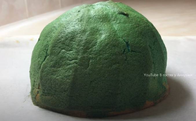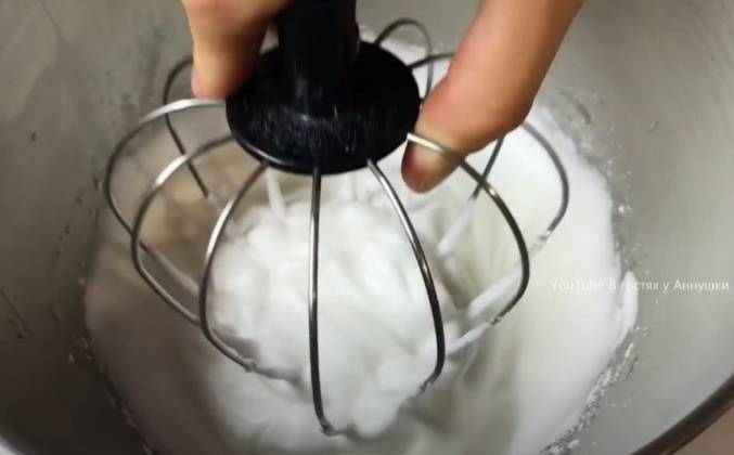 3. Белки главное не пере взбить чтобы они не стали рыхлыми. В общем на всё у меня ушло примерно 10 минут с учётом того что я ещё делала кадры. Пергамент я смазала растительным маслом и выкладываем белки делаю горочку. Если хотите добавить краситель вы можете посмотреть видео как я это делаю. Из белков нужно сформировать форму полусферы выровнять и отправить хорошо разогретую духовку на 30 минут.
