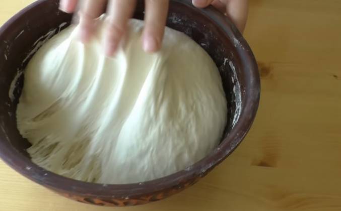 2. И работать удобнее. Хорошо вымесили и оставляем для подъёма в чашке, накрытой пленкой или тарелкой, полотенцем, чем угодно. Для подъема, ну, примерно, минут на 40, на час. Все зависит от температуры на вашей кухне. Тесто отлично подошло. Посмотрите, какое нежное и воздушное. Его сейчас нужно слегка обмять. Обратите внимание - уже не прилипает к столу. Все, слегка прям, нежно-нежно. Но для удобства работы, мы все равно смажем поверхность стола растительным маслом. И сейчас раскатаем тесто. Толщина тесто будет где-то 2-3 миллиметра. Вот такой пласт теста у нас получился. И еще понадобится нам форма для кексов или маффинов. Смажу сейчас форму сливочным маслом. Потом, когда буду использовать повторно обязательно расскажу, как она ведет себя.