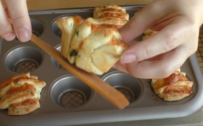5. Посмотрите, как отлично выскакивает из формы. Прям раз - и готово. Ничего не прилипло. Форма себя оправдала. Ох, смотрите, какая красота! Булочки очень горячие и очень ароматные! Посмотрите, какие красивые! Со всех сторон. Горячо, но я вам покажу. Слоеные невероятно! И все очень легко отламывается. Подождем, пока остынут. Все их ждут с нетерпением. Друзья, посмотрите, какая красота! Очень вкусные, нежные и ароматные. Угощайтесь!Видео рецепт ютуб ниже 👇