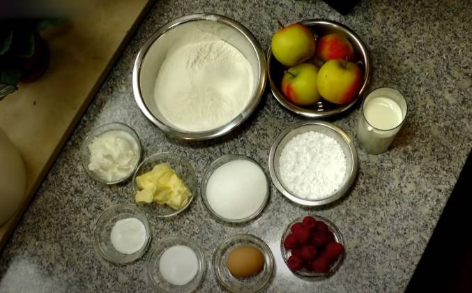Сегодня мы приготовим яблочные пирожные со сливочным кремом. Яблочные пирожные с взбитыми сливками! Это тот самый случай, когда можно сказать – «Вкус знакомый с детства». Эти симпатичные и вкусные Пироженки, моя мама всегда пекла в канун Нового года. Поэтому у меня они ассоциируются с чем-то светлым, праздничным и радостным. И вот этим праздничным настроением я и хочу поделиться сегодня с Вами. Это очень простые в исполнении и очень вкусные пирожные с яблочной начинкой. Рецепт очень прост, не дорог, и получается всегда. Для приготовления яблочных пирожных нам понадобятся следующие ингредиенты:
