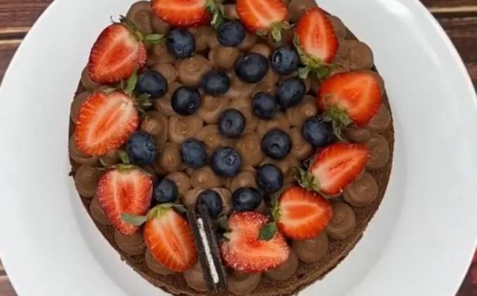 Вкусный шоколадный бисквитный торт с вишней