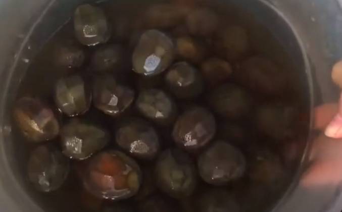 2. На 6 день сливаем воду с орехов, прокалываем вилкой с 3 сторон заливаем холодной водой и ставим на плиту, варим 10 мин с момента закипания, сливаем горячую воду заливаем холодной водой и даём полностью остыть, сливаем воду и снова заливаем холодной водой, доводим до кипения варим 10 мин.