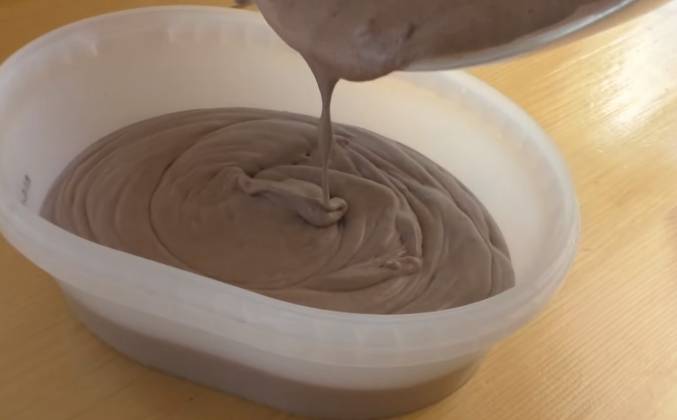 2. Осталось только перелить в удобную емкость. У меня емкость из-под магазинного мороженого. И отправляем в холодильник часа на 4, на 5. Ничего перемешивать не нужно. И мороженица никакая не нужна, посмотрите, как все быстро. Конечно же, я оговорилась, и нужно поставить в морозилку, в холодильнике никакое мороженое не застынет.