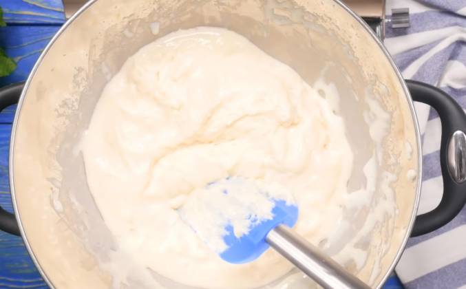 3. Сыр продолжаю помешивать еще пару минут. В процессе приготовления сырную массу доводить до кипения нельзя. Итак, половину плавленого сыра я откладываю. Это будет просто сливочный сыр. Сейчас масса жидкая, но позже, постояв холодильнике, сыр достаточно загустеет. Перед тем как сыр поставить в холодильник, остужаю его сначала при комнатной температуре.Видео рецепт ютуб ниже 👇