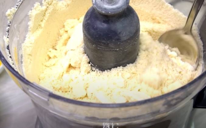 2. Можно тесто замесить вручную, берем форму, у меня диаметр формы 24 сантиметра, смазываем маслом тесто, немного раскатываем скалкой и кладем в форму, теперь руками распределяем тесто по форме, делаем бортики вилкой и делаем прокол и ставим в разогретую духовку, и выпекаем при 200 градусах 15-20 минут до легкого золотистого цвета, теперь вынимаем из формы и даем остыть.