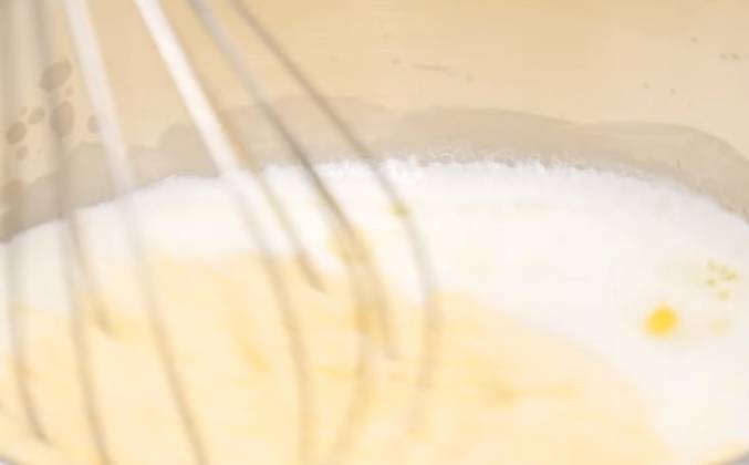 3. В это время готовлю крем. Для крема беру домашний маскарпоне. Смотрите какой он гладкий, мягкий и нежный, очень сливочный, и запах, и вкус. Маскарпоне в равных пропорциях смешиваю с мягким обезжиренным творогом. Также в крем добавила немного ванильного экстракта. Можно использовать ванильный сахар. Чтобы снизить калорийность я использую эритрит - это натуральный подсластитель. Вы можете использовать подсластитель по вашему вкусу. Крем взбиваю миксером до однородного гладкого состояния. Уйдет на это примерно 2-3 минуты. Начинаю собирать десерт.