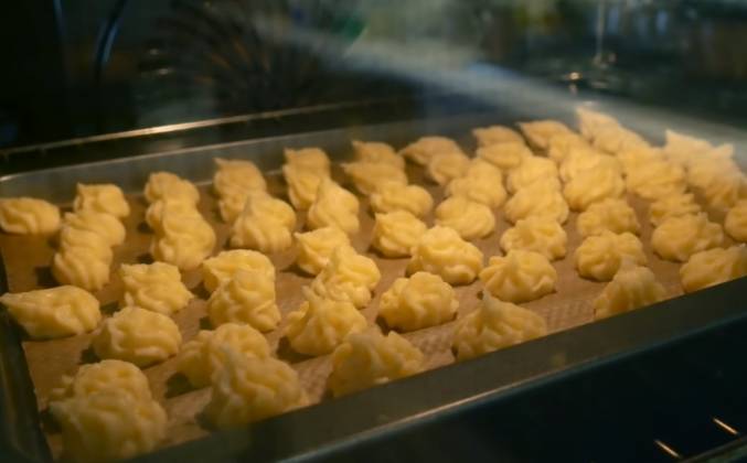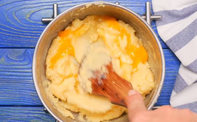 2. Точно также вмешиваю его до того момента, пока текстура теста не станет гладкой и однородной. Тесто получается густым и немного тягучим. Перекладываю в кондитерский мешок и буду отсаживать профитроли на противень. Противень застилаем бумагой для выпечки и профитроли делаю совсем небольшими. Духовка у меня уже разогрета до 190 градусов. Выпекаю профитроли при такой температуре 10 минут. Через десять минут температуру снижаю до 150 градусов и оставляю профитроли в духовке еще минут на 15. Желательно в процессе выпекания дверцу духовки не открывать. Румяные, воздушные профитроли полностью остужаю.
