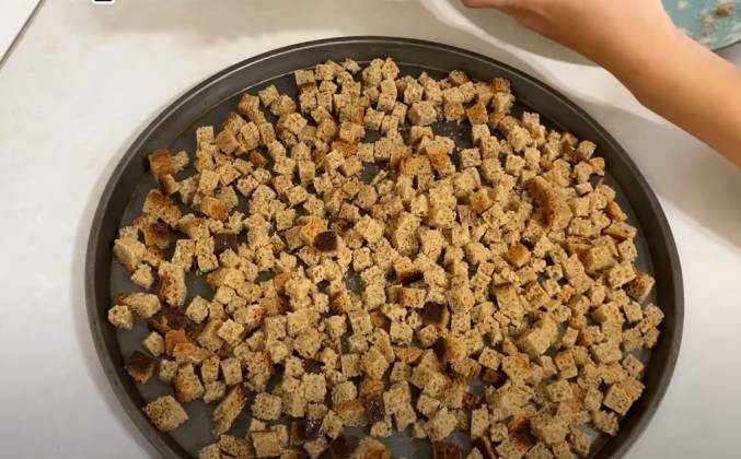 3. Можно добавить паприку или сушеный чеснок. И все хорошо перемешаем. Духовку заранее разогрела до 200 градусов. Ставим в разогретую духовку на 3-5 минут. Постоянно открывайте духовку, потому что сухарики могут сильно пригореть. У меня получились хрустящими. Обязательно попробуйте приготовить. Напишите в комментариях какой способ Вам понравился. Мне понравилось жарить на сковороде, но если есть свободное время. Если нужно много сухариков, то я делаю в духовке.Видео рецепт ютуб ниже 👇