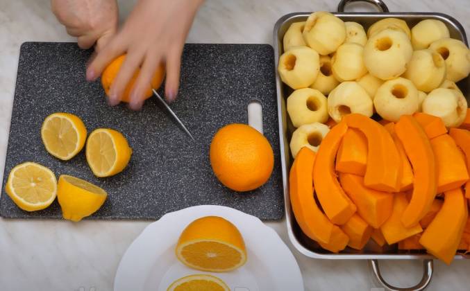Как приготовить Домашний тыквенно яблочный сок с мякотью на зиму с апельсином рецепт пошагово