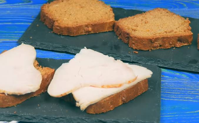 Ну а сегодня на завтрак кусочки индейки раскладываю на хлеб. Чтобы бутерброды были не очень скучными, сделаю несколько разных добавок. Запеченная грудка индейки для бутербродов на тыквенном хлебе по рецепту канала Здоровое питание.