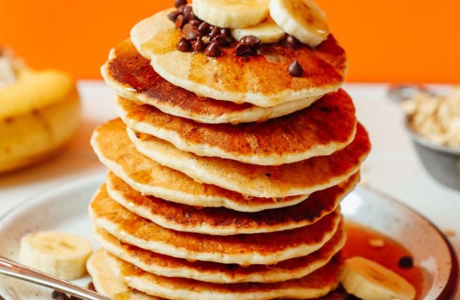 Веганские овсяные блины с бананом из овсяных хлопьев с шоколадом в 1 миске с полезными ингредиентами! Легкий, воздушный, нежный, естественно подслащенный и идеальный здоровый завтрак или десерт!