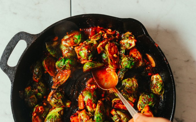 3. Как только брюссельская капуста карамелизуется, добавьте нарезанный лук-шалот или зеленый лук (по желанию) и приготовленный соус и жарьте еще 1-2 минуты, чтобы еще больше покрыть и карамелизировать капусту. Затем выключите огонь и перенесите на блюдо. Украсить измельченным арахисом по желанию (по желанию). Наслаждайтесь горячим блюдом. Храните охлажденные остатки в холодильнике до 3-4 дней. Разогрейте на среднем огне в чугунной сковороде до горячего состояния. Брюссельские качаны не особенно дружелюбно к замораживанию. Они восхитительны сами по себе, но также хорошо сочетаются с нашей цветной капустой Гочуджан, легким веганским кимчи, жареным рисом из киноа, баклажанами с кунжутом и миндальным маслом.Видео рецепт ютуб ниже 👇