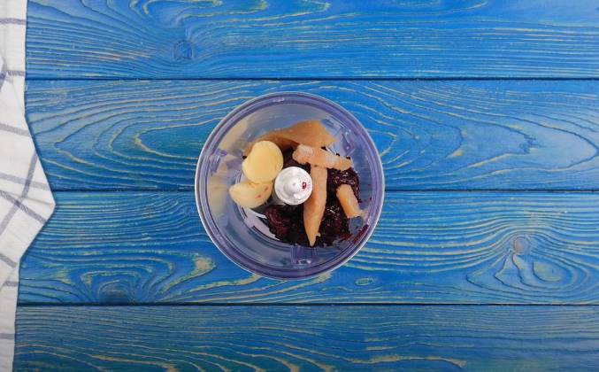 2. Наиболее эффектно фаршированные яйца будут выглядеть, если использовать кондитерский мешок с насадкой. Но даже если вы их наполните при помощи обычной чайной ложки, на вкусе это точно не отразится! Покажу еще один вариант Фаршированных яиц, потому что на столе обычно серверу я сразу оба. Сваренные вкрутую яйца режу, пополам, вынимаю желтки. Делаю начинку, в измельчитель кладу натертую запеченную свеклу, можно использовать вареную, икру сельди и 2 вареных желтка. Измельчаю. Не всегда текстура начинки получается гладкой и однородной, Это зависит и от влажности свеклы и от качества икры.
