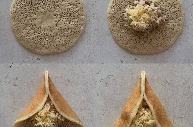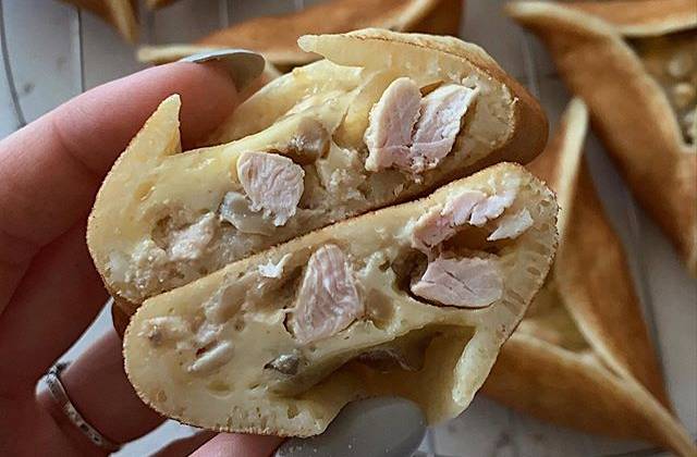 Арабские блинчики с начинкой с курицей, грибами и сыром