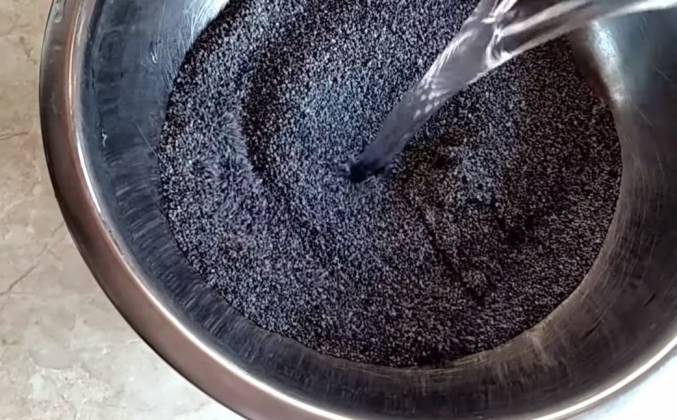 2. Заливаем его несколько раз чистой водой, воду сливать, пока вода не станет прозрачной. Хорошо процедить мак снова на сите или марли, так, чтобы он был почти сухим. Теперь перетереть. Я буду делать традиционным способом в башке. Или можно на мясорубке дважды.