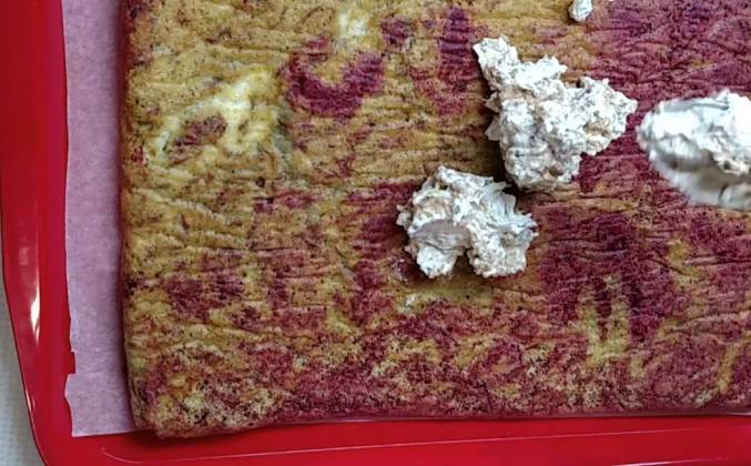 2. Выпекать при 180 градусах 15-18хв., я пекла 18. Так испечь еще один бисквит со свеклой. Каждый раз я сбивала белки в той же посуде. А другие компоненты смешивала отдельно. Аналогично в той же последовательности готовлю тесто с морковью и выпекаю при 180 градусах 18мин. Для крема возьму творог, домашние сепараторные сливки, майонез. Или можно взять йогурт без добавок или сметану. Посолить. Перебить блендером в однородную массу. Порезать кубиками маринованный огурец или свежий. Я бы брала свежий следующий раз.