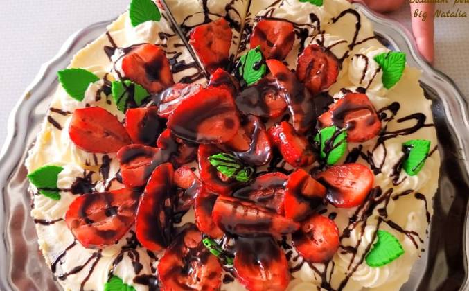 Сезон клубники в полном разгаре, поэтому предлагаю вам рецепт шоколадного торта с клубникой и кремом.