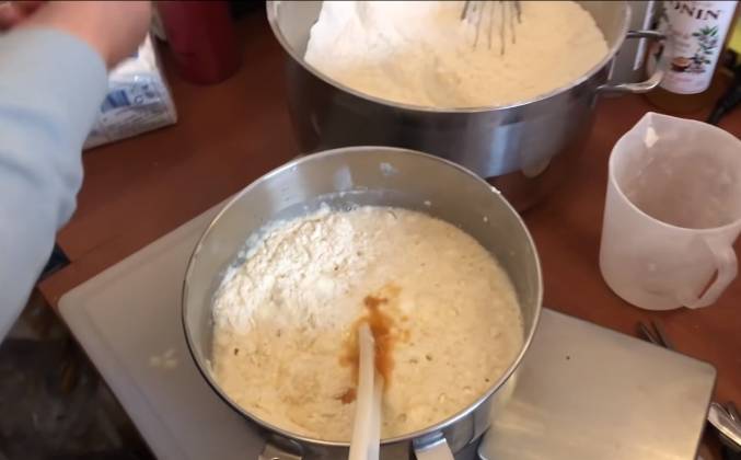 2. Разогреваем растительное масло для фритюра, выливаем тесто в кондитерский мешок и выдавливаем маленькие кусочки теста во фритюр.
