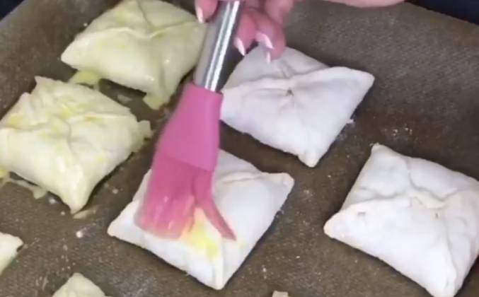 4. Накрыть начиненные конвертики полотенцем и оставить на 30 минут, чтобы тесто немного поднялось.