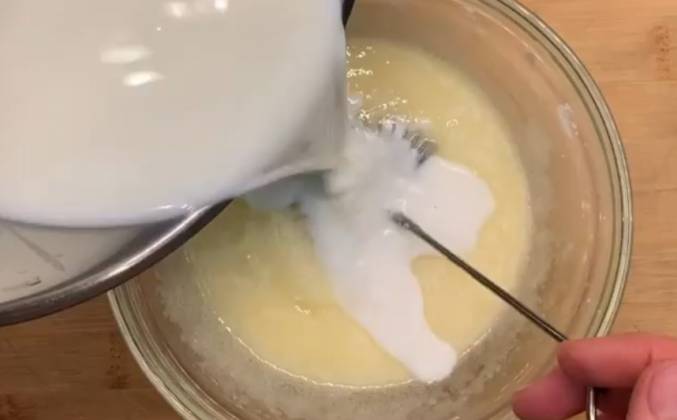 3. Крем: Желтки, сахар и крахмал смешать до однородности. Молоко разогреть в сотейнике до горячего состояния. Постоянно помешивая, влить 1/2 часть горячего молока тонкой струйкой в желтково-сахарную массу, обьединить до растворения сахара. Перелить в сотейник и довести, помешивая, до загустения. Снять с плиты, добавить сливочное масло кусочками, затем- перемешать. Перелить в миску, накрыть пленкой в контакт; охладить до комнатной температуры.