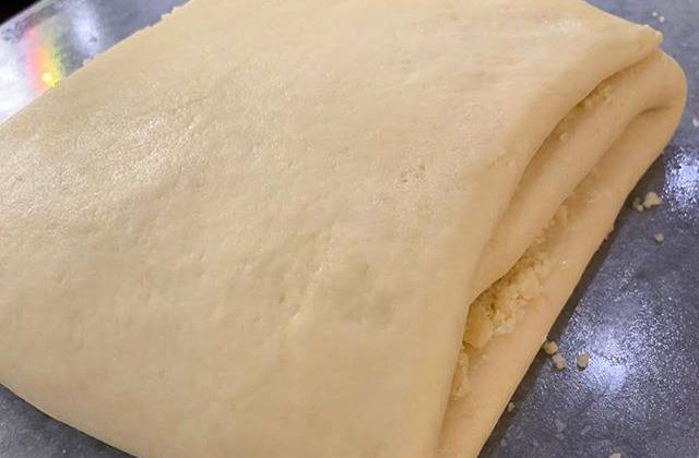 2. Так как порция по этому рецепту большая , одну часть можете убрать в морозилку . И использовать в течении недели. Для начинки (хориз). Соединить все ингредиенты тщательно перемешать и растирать. Должна получиться однородная крошка . Этим временем разогреваем духовку до 180 градусов. Формируем гату. Листайте и смотрите подробный процесс 😘 Раскатываем наше тесто.