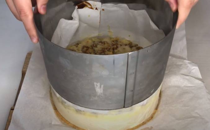 2. Форму для выпечки обернуть фольгой. Выложить творожную массу в форму. Сверху выложить крамбл. Отправить в разогретую до 150 С духовку на 1 час 20 минут.Видео рецепт ютуб ниже 👇