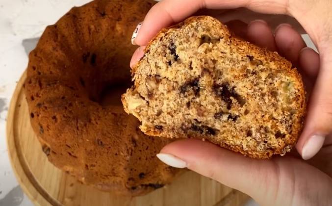 4. Обязательно попробуйте приготовить. Этот пирог съели за 1 сутки. Моей семье очень понравилось. Дочка кушала с удовольствием. Для начинки я использовала грецкий орех и шоколад. На ваше усмотрение, можете положить изюм, разные виды орехов. Или можно вообще ничего не класть. Сейчас горячий пирог. В середине полностью приготовлен. Вкусный, мягкий и нежный. Вкус шикарный. Обязательно приготовьте.Видео рецепт ютуб ниже 👇