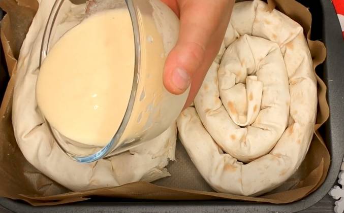Пирог из лаваша с творогом, бананом, орехами и курагой в духовке