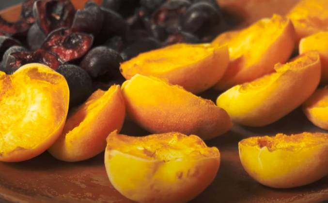 2. Разложите на тарелки или пергаментную бумагу, что найдётся. Желательно что-нибудь, что не засорит потом дыхало кита и прочих милых зверушек. Вместе с бананами, конечно, заготовьте желаемые фрукты. Это могут быть абрикосы, если сезон, черешни, если вдруг есть кто-нибудь рядом, кто захочет выковыривать косточку изнутри. Ну а как всё заморозится — миксуйте.