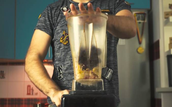2. Взбиваем в блендере замороженные бананы и вишню.