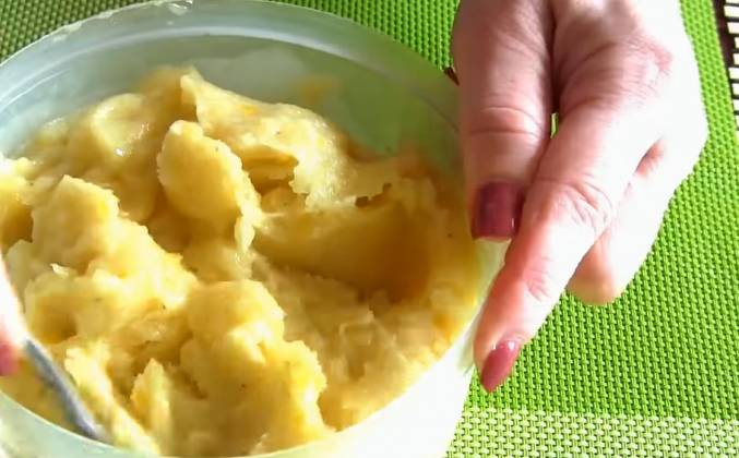 2. Пробуем на вкус. Кто любит послаще добавляем чуть больше сахарной пудры. Массу перекладываем в контейнер и ставим в морозильную камеру. За это время перемешайте сорбет два-три раза.