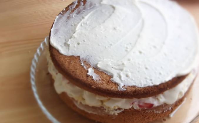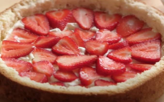 Как приготовить Бисквитный торт с кремом и клубникой рецепт пошагово