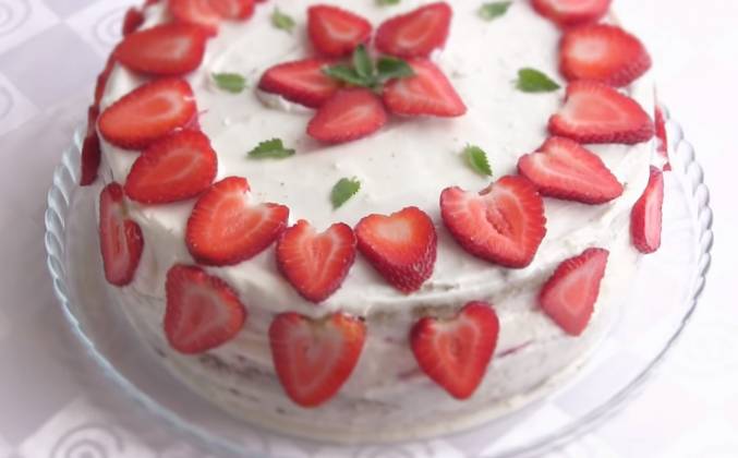 Бисквитный торт со сметанным кремом и клубникой по рецепту канала Простые рецепты - вкусный торт "Клубничная шкатулка". Рецепт простой.