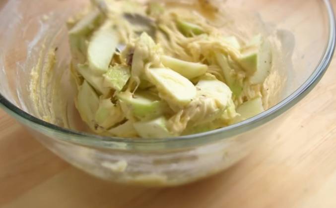 2. Снять с одного лимона цедру , добавить. И при желании , ели яблочки очень сладкие, добавьте одну столовую ложку лимонного сока. Порезать яблоки на дольки. В этом пороге, яблок должно быть больше чем теста. И добавить горсть орехов. Перемешать. Выложить тесто в форму и выпекать примерно минут пятнадцать, при температуре 180 градусов , затем уменьшить немного температуру до 160 градусов.
