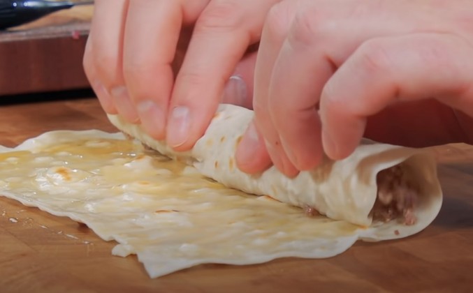 6. Понимаете, не то, чтобы испечь, а допечь, навести хруст на тесте и подогреть мясо внутри. Вот такая моя задача. На заправках есть такие роликовые грили, сосиски жарят. Я как приеду заправляться, меня девушка уговаривает: "Будете сосиску? Будете хот-дог?" Я говорю: "Хоть дог, хоть не дог. Кто? Я, Сталик Ханкишиев, сосиску?" А вот такую штуку, может быть, и съел бы. Но для общепита такие штуки готовить невыгодно. Слушайте, туда же мясо надо класть. Ну вот так, вот такой рулетик. Съемочная группа, идем, попробуем. Антоша, давай, попробуй. Если бы такое продавали на всех заправках, Сталик, то и люди бы домой после этого счастливыми приезжали. Да домой бы они и не ехали. Что дома делать? Последний кусочек остался для Саши. Саша, это твое. Где-то 10-12 минут простояло. Хочу посмотреть, как оно там. Вы знаете, я хочу, чтобы это было не просто сочно, я хочу, чтобы это было еще очень аппетитно и очень сытно. Поэтому вот здесь топленое масло нагретое.